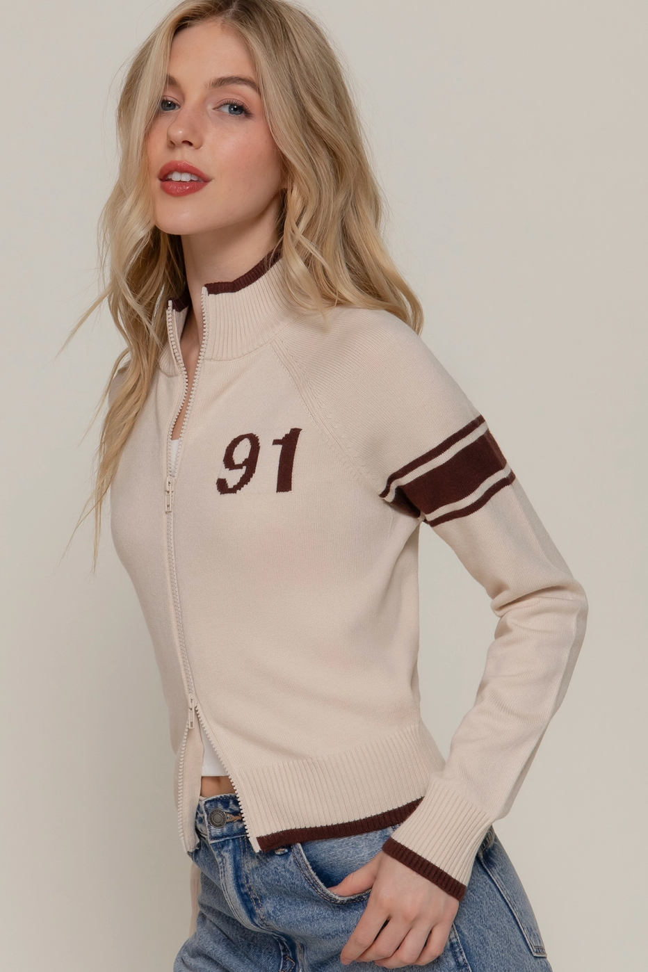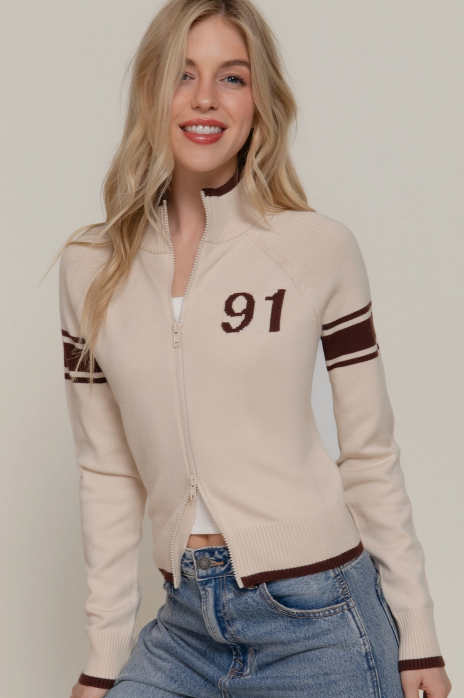 The Nora is a vintage-inspired zip-up jacket that effortlessly blends timeless style with modern comfort. Crafted in soft neutral tones, this piece works with virtually any outfit in your wardrobe. The relaxed fit and classic silhouette make it perfect for layering on cooler days or throwing on for an instant style upgrade. Whether you're heading out for casual errands or meeting friends, The Nora delivers that coveted vintage vibe without trying too hard.